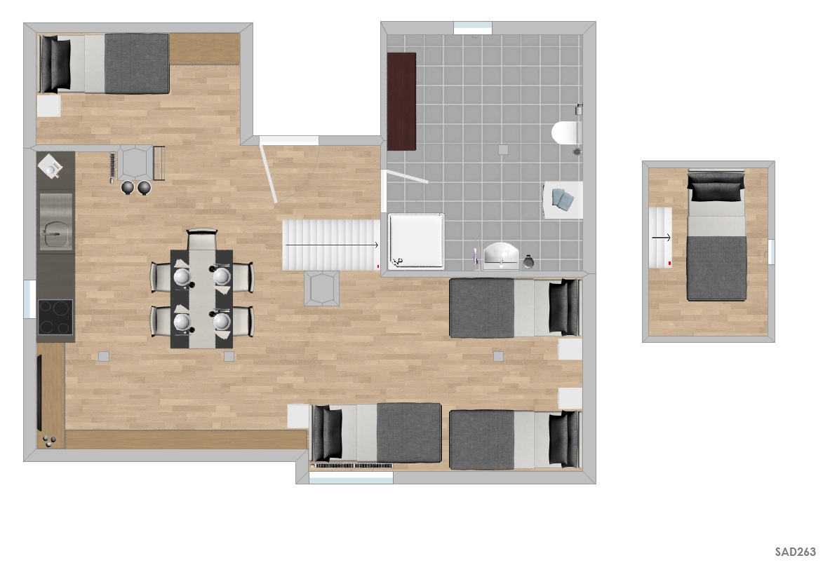 Auf dem Grundriss der Unterkunft können Sie die genaue Zimmer- und Bettenaufteilung sehen.